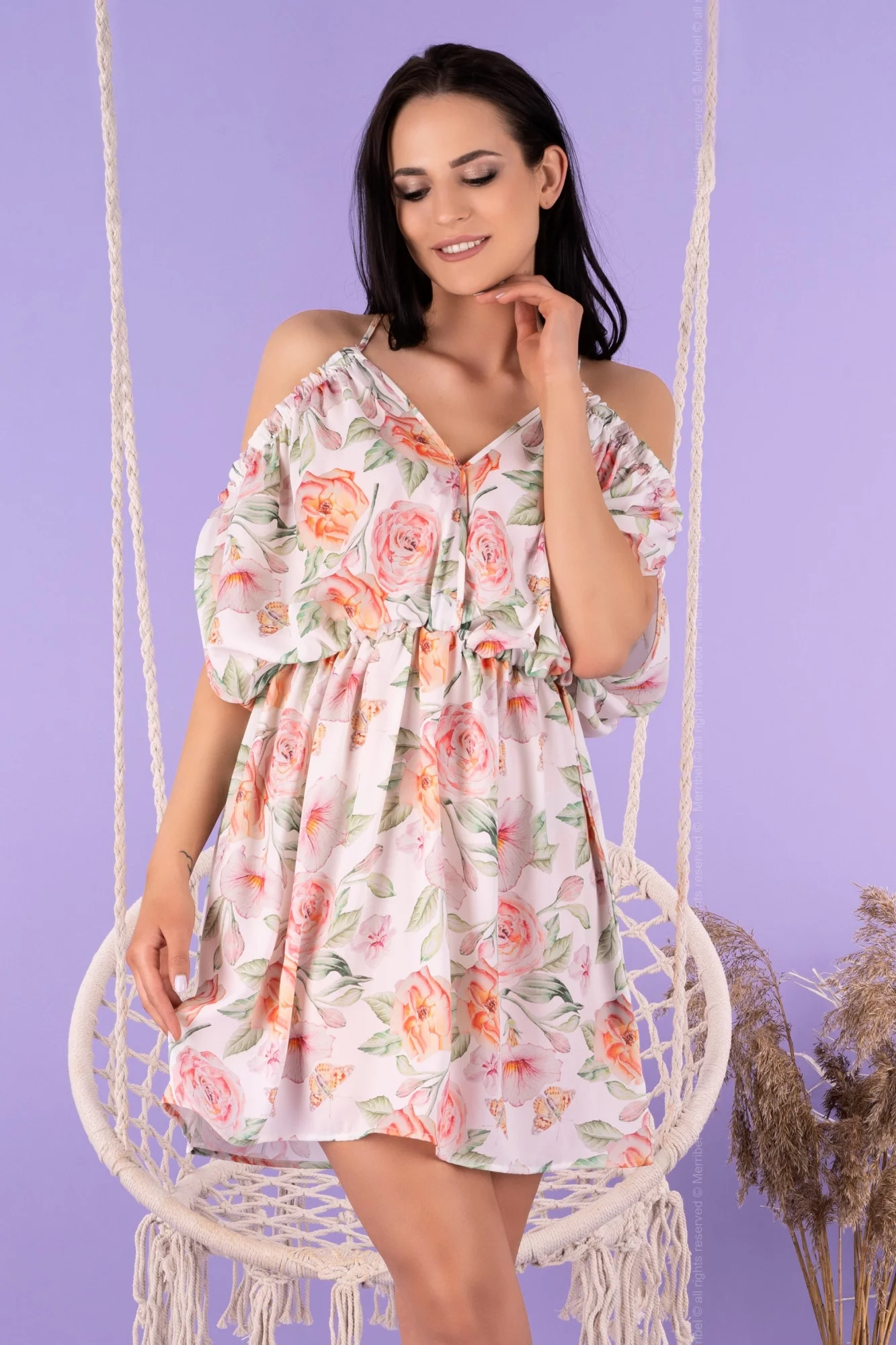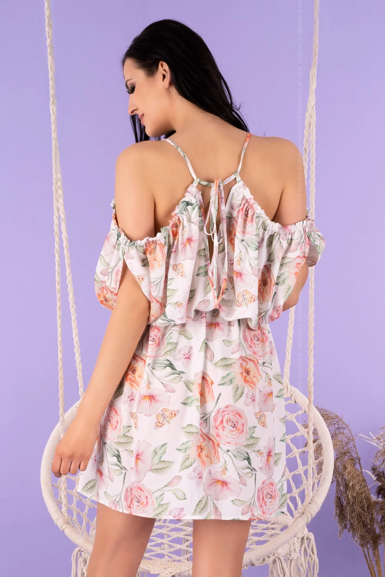 Mini šaty s kvetinovým vzorom, lodičkovým výstrihom a krátkymi rukávmi.Bavlna 100% Veľkosť Celková