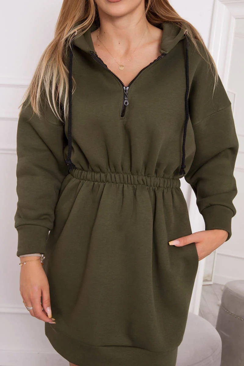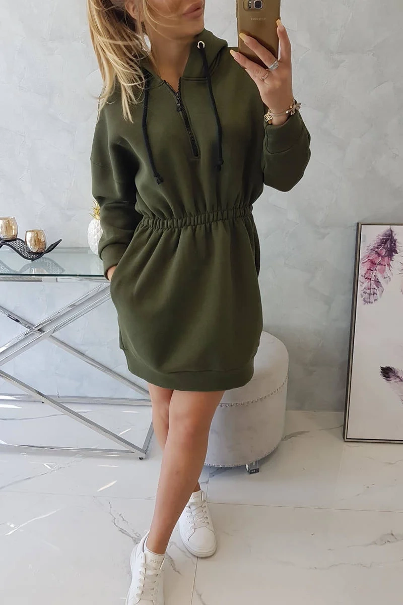 Predstavujeme vám módne šaty. Šaty majú kapucňu a elastický pás. Ideálna každodenná poloha. Šaty sú vyrobené z vysoko kvalitnej zateplenej tkaniny. Veľkosť je univerzálna a vyhovuje dámam, ktoré nosia veľkosť S, M alebo L.