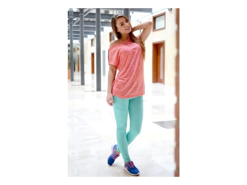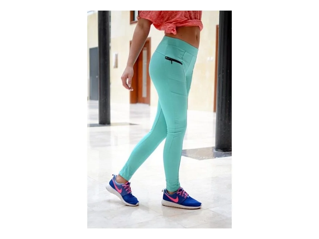 Dámske slim športové nohavice s dekoratívnymi zipsami v tyrkysovej farbe. Vhodné najmä na športové účely. Nohavice sú vyrobené z veľmi príjemného materiálu.