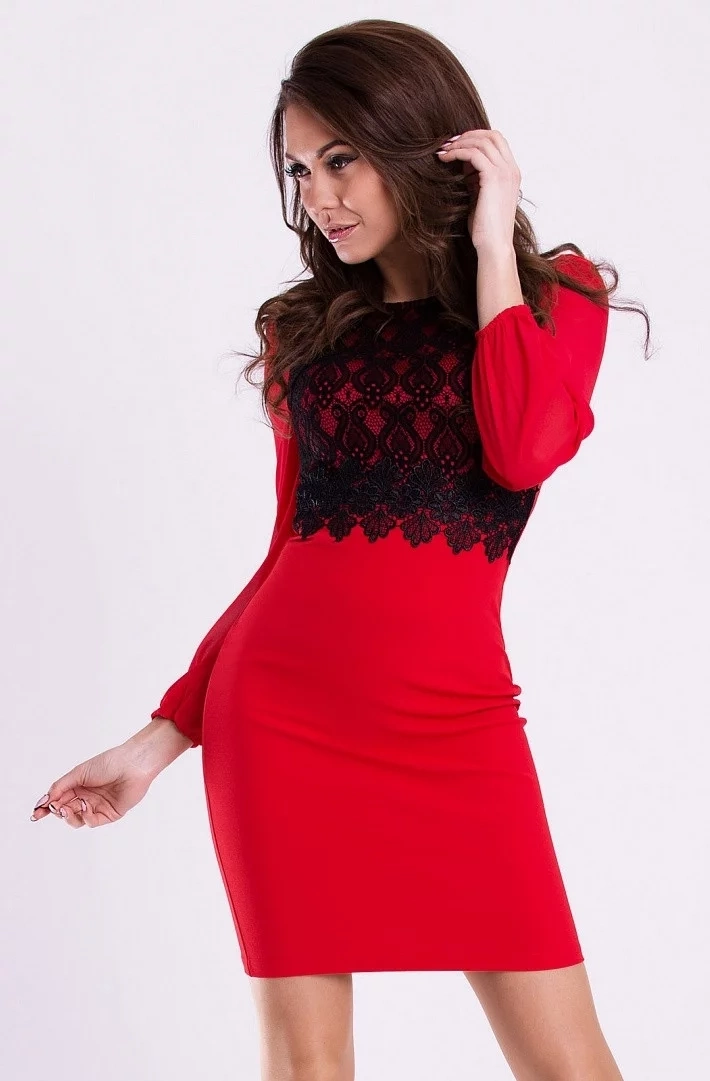 Dámske spoločenské šaty s dlhými šifónovými rukávmi. Na zadnom diele dlhý skrytý zips.