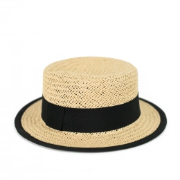 Ažúrový letný klobúk. Vyrobené z prírodných materiálov. Šilt s nastavením na chrbte. Veľmi ľahká, na hlave vyzerá skvele. Vytvorené pre milovníkov klobúkov s krátkou krempou.