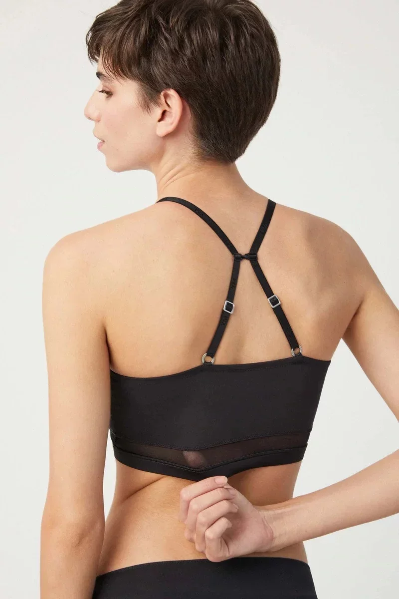 Dámsky top na posúvacie ramienka, spodná časť topu s tylovou vsadkou.