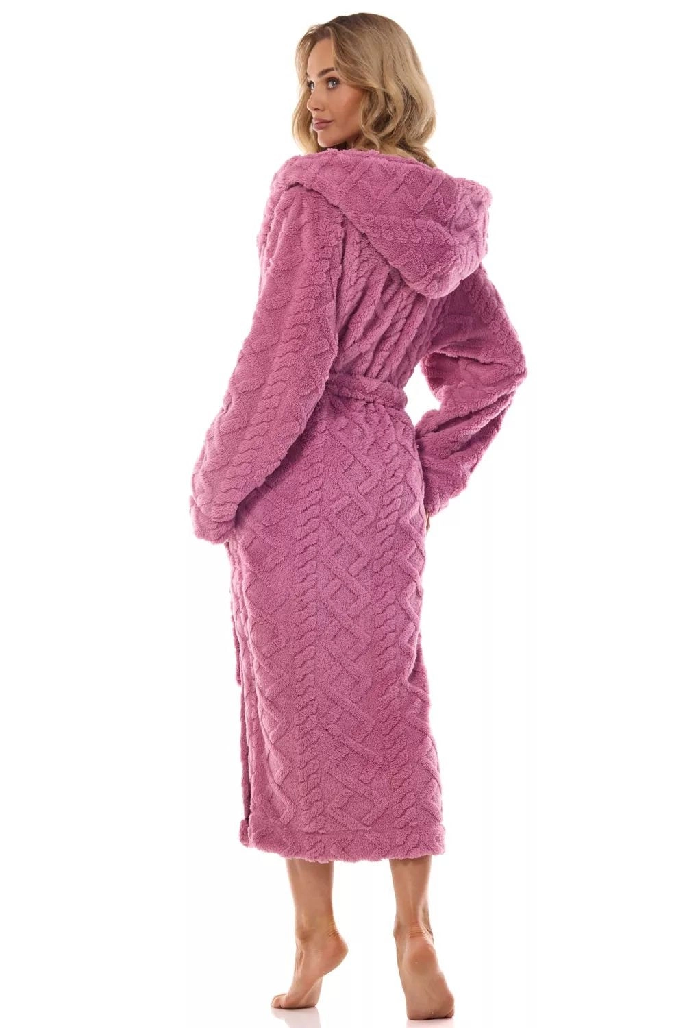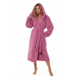 Dámský župan 2402 Geo L&L - z měkkého materiálu typu soft - protlačený vzor - na bocích kapsy - zavazování v pase na pásek - s kapucí - dlouhý