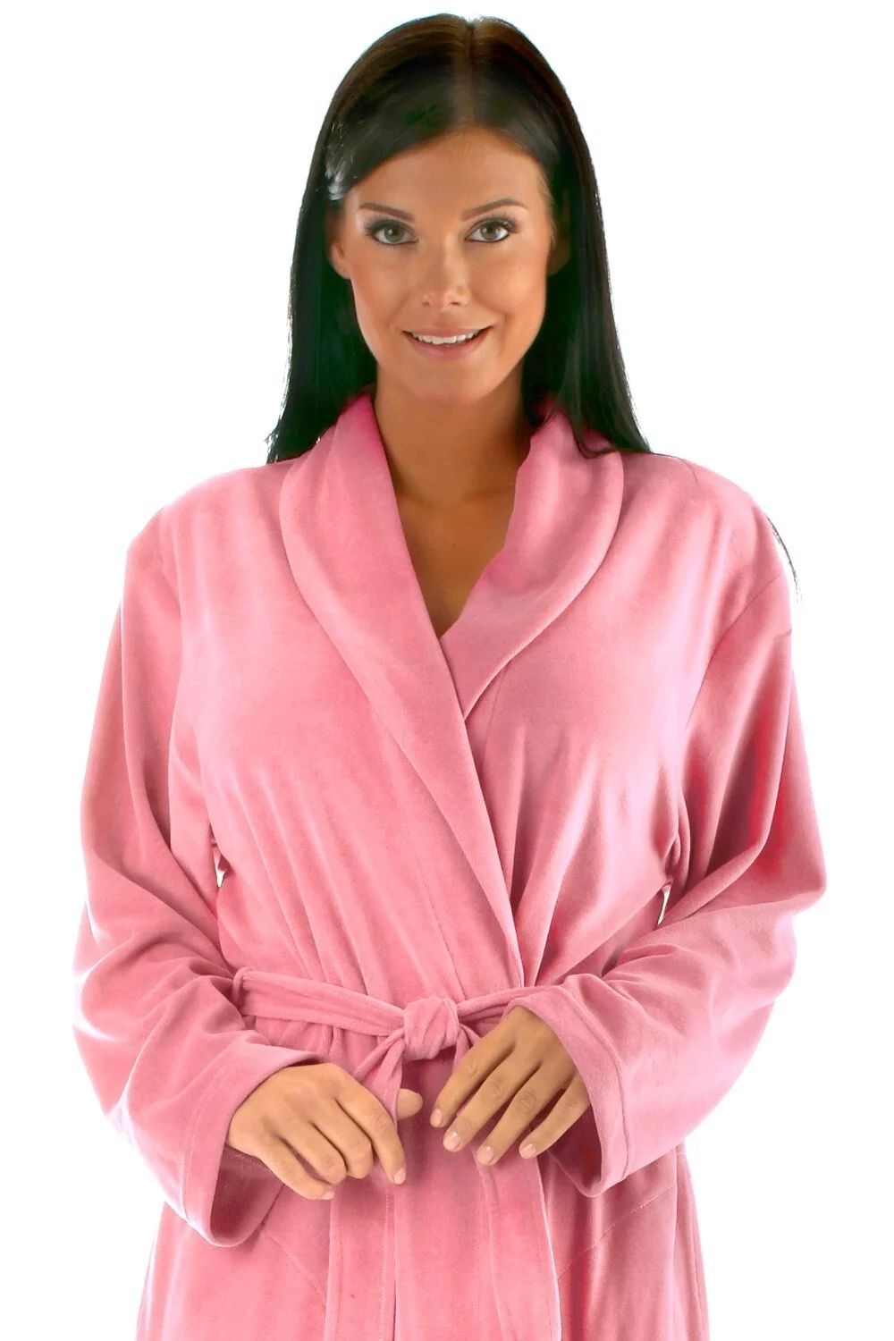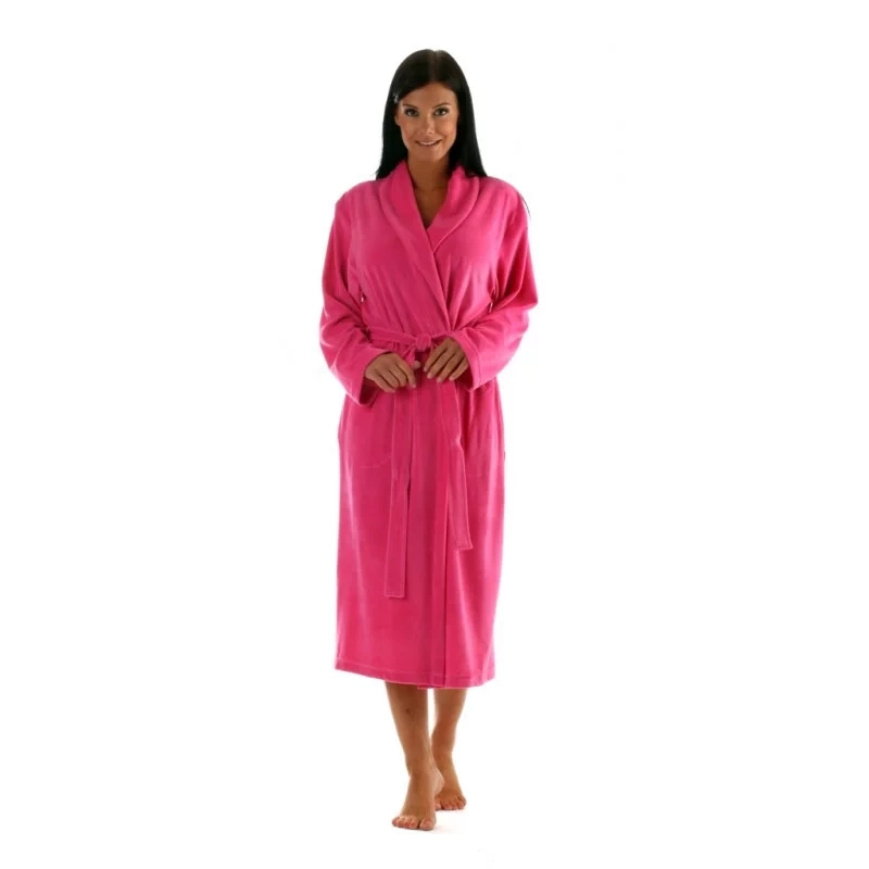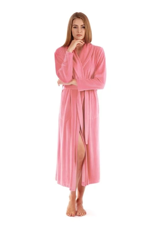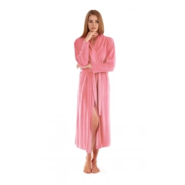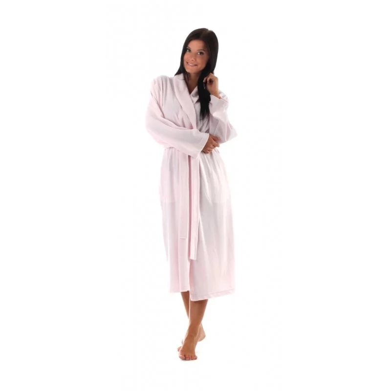 Dámsky župan RIO 2163 - Vestis - má príjemný hodvábny povrch, veľmi ľahko sa udržuje a má klasický strih dlhý strih s dvoma vreckami a šálovým golierom.
