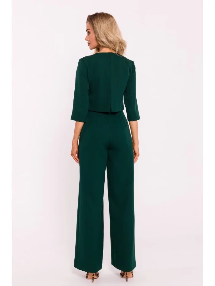 INFORMÁCIE O PRODUKTE: tkaná látka kombinéza so širokými nohavicami krátky rukáv dvojvrstvový top skrytý zadný zips bočné vrecká bez podšívky naša modelka je vysoká 171 cm a nosí veľkosť S navrhnuté a vyrobené v Poľsku