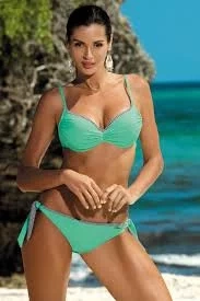 Krásne dvojdielne plavky, ktoré využijete ako pri plávaní, tak pri opaľovaní.Podprsenka má vystužené košíčky, medzi ktorými je jemné naberanie. Ramienka podprsenky je možné nastaviť, ale nemožno ich odopnúť. Vzadu sa podprsenka zaväzuje.Nohavičky sú klasické a zaväzujú sa na bokoch. Zadný diel je jednofarebný. Plavky sú rýchloschnúce a odolávajú pôsobeniu slnečného svitu (neblednú a nevyťahujú sa).Model je vyrobený z veľmi kvalitnej talianskej látky Carvico Tesutti a je ozdobený módnymi pruhovanými vsadkami.Zloženie: 80% polyamid, 20% elastan.