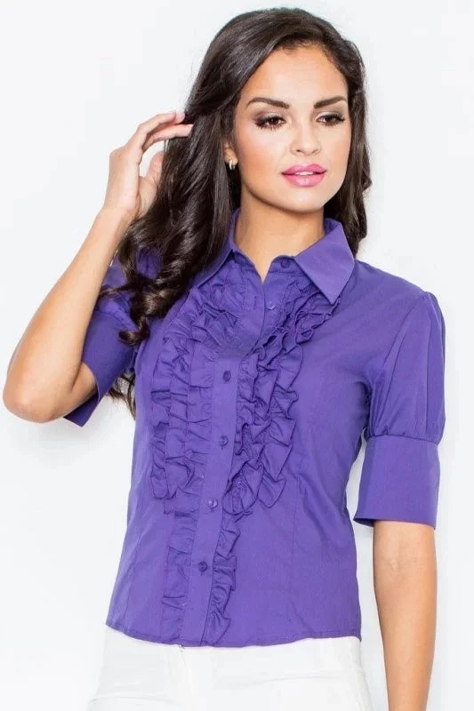 Dámska úchvatná košeľa s volánmi a kratšími rukávmi.
