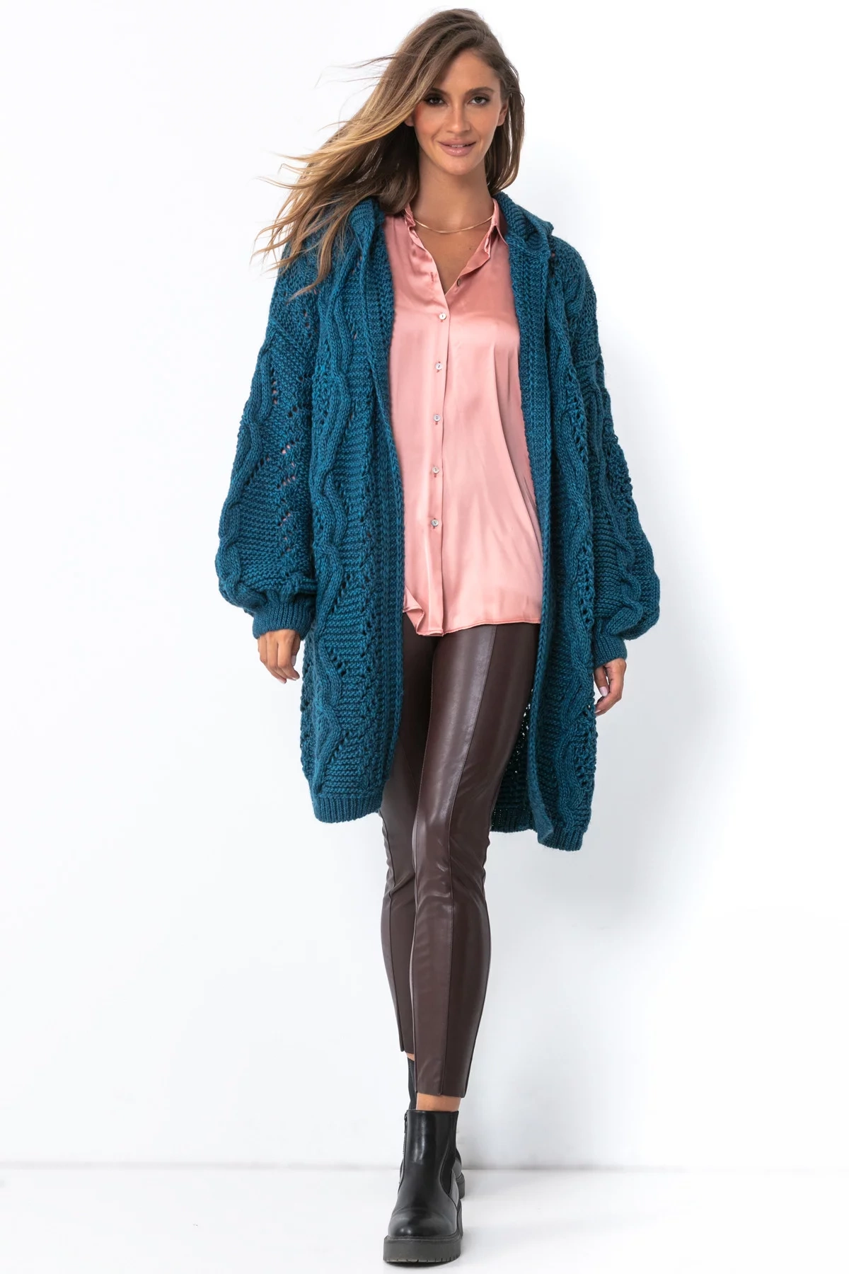 Hľadáte nápad na módne letné oblečenie, keď je počasie skôr jesenné? Dlhé, zaujímavo zakončené svetre zaujímajú vo vašom šatníku zvláštne miesto?Pozrite sa na náš sveter s dlhými rukávmi a kapucňou s krásnou prelamovanou väzbou. Je to pohodlný sveter, ktorý pekne sedí na tele. Tento strih svetra sa hodí k maxi šatám a letným nohaviciam. Na jeseň av zime ju noste cez blúzky s dlhými rukávmi a rolákmi. Sveter má kapucňu, ktorá mu dodáva športový charakter. Preto sa skvele hodí aj k džínsom a vhodným nohaviciam. Vytvorte si jedinečné súpravy s teniskami, oxfordkami, členkovými topánkami a topánkami nad kolená. Dlhý a pohodlný kardigan v jednom z piatich módnych odtieňov je nevyhnutnou súčasťou vášho jesenného/zimného šatníka.