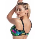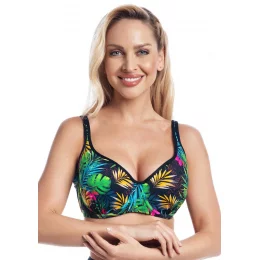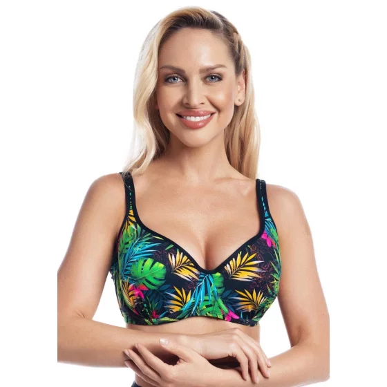 Dámské plavky Fantasy z nové kolekce Sumba. Dámský horní plavkový díl v elegantním barevném provedení má jemně vyztužené nařasené košíčky s kosticemi a vysoký střed. Střih košíčků a široký obvod podprsenky s bočními pružnými kosticemi Vám zaručí pevné a pohodlné nošení a přitom Vám vytvaruje krásný a plný dekolt. Podprsenka má pevně všitá, nastavitelná ramínka. Zadní zapínání je ukončeno pevně všitou sponou na záháknutí. U těchto plavek lze libovolně kombinovat spodní a horní díl v řádu zadaných velikostí jednotlivých dílů. Plavky jsou české výroby a koupí tohoto výrobku podpoříte produkci českého oděvního průmyslu.