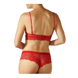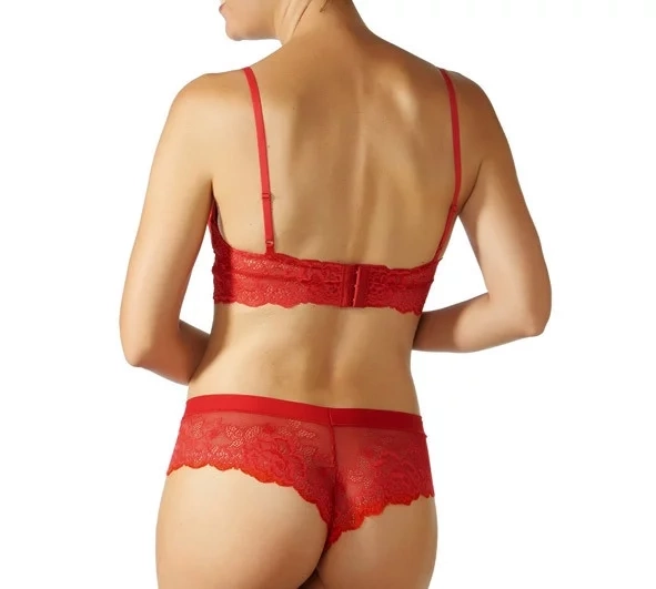 Janira Greta Bralette Top lemovaný úzkymi ramienkami Červená.Mäkká a ženská podprsenka Greta z čipky.Greta Bralette je bez vešiaka av miskách má vyberateľné vankúšiky.Vďaka tomu je flexibilnejší, pokiaľ ide o veľkosť, a preto sa zmestí viac.Top Greta sa vzadu zapína na sponky a má nastaviteľné ramienka.