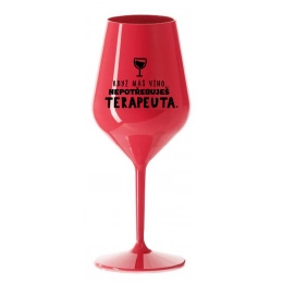 KEĎ MÁŠ VÍNO, NEPOTREBUJEŠ TERAPEUTA - červený nerozbitný pohár na víno 470 ml