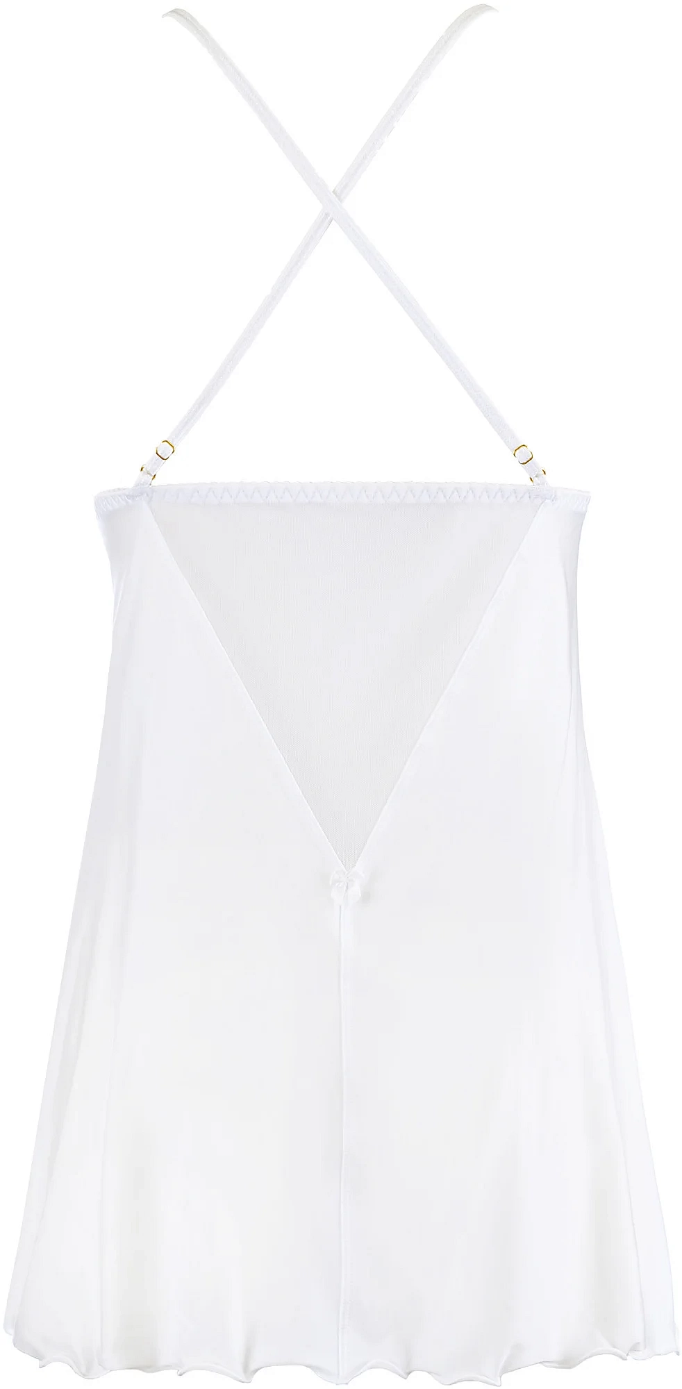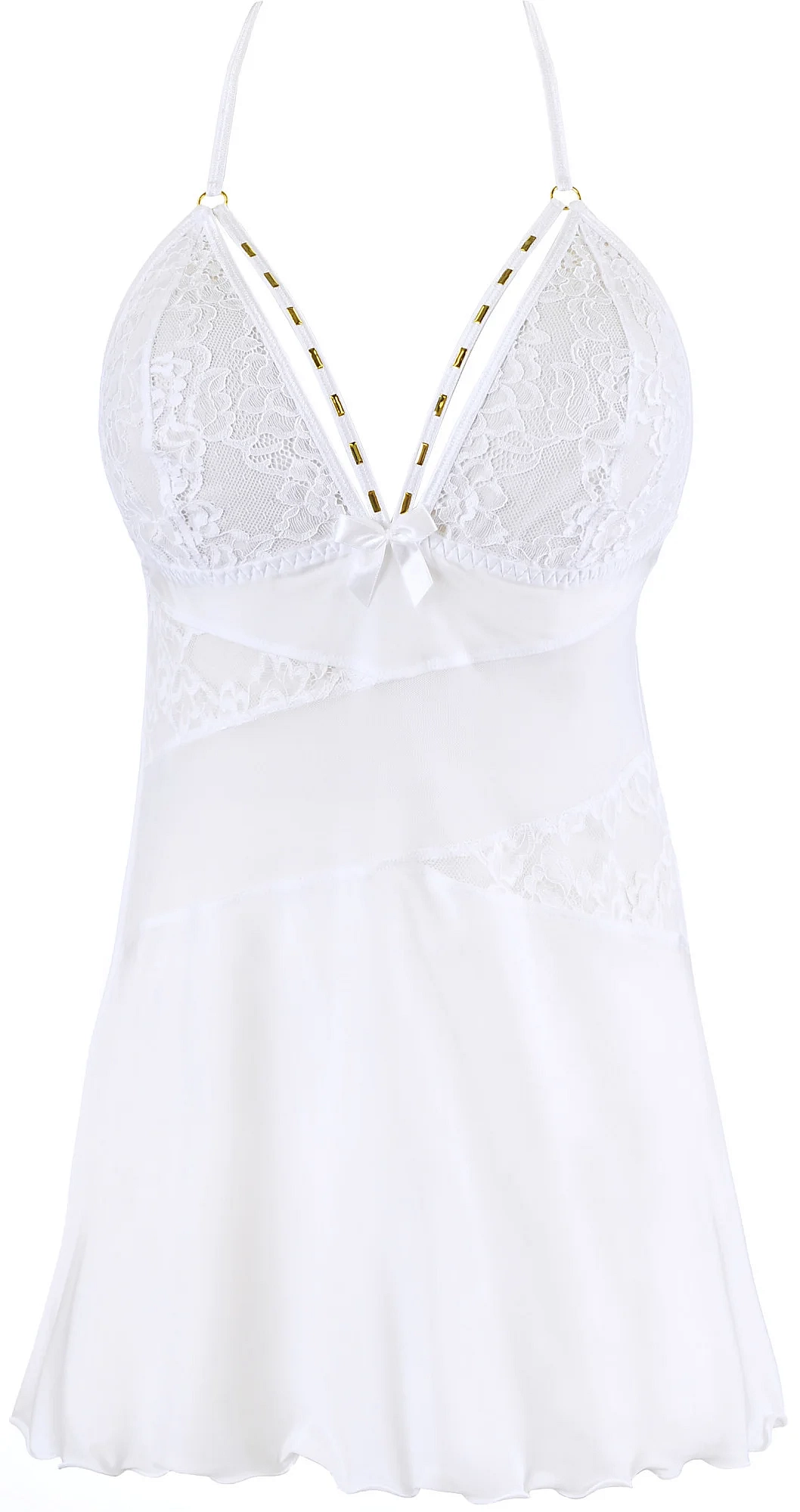 O bjavte svoju slobodu v našej efektnej, bielej babydoll s bohato zdobenými prúžkami na dekolte.
