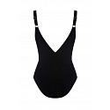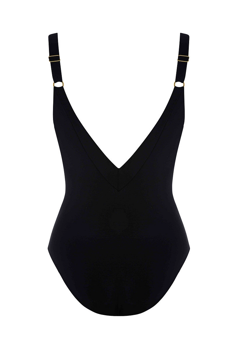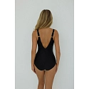 Kostium został wyposażony w lekko usztywniane wkładki oraz biustonosz bez fiszbin, co gwarantuje naturalne podtrzymanie biustu. Wewnętrzna siateczka modelująca pomaga subtelnie wyrównać linię sylwetki, zapewniając efekt wyszczuplenia. Regulowane ramiączka pozwalają na indywidualne dopasowanie, a głęboko wycięty tył dodaje całości zmysłowego charakteru.