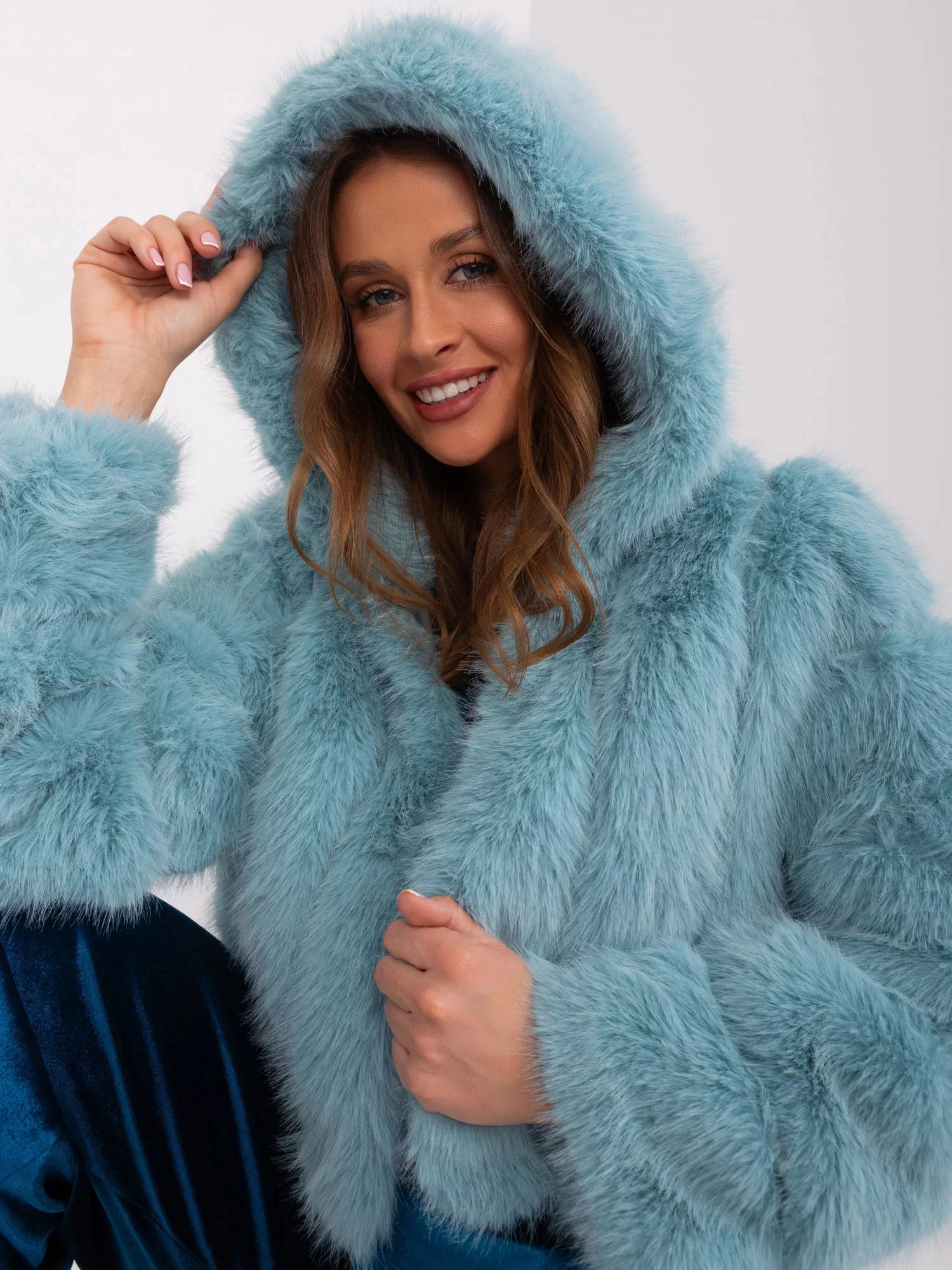 Modelka má na sebe veľkosť S/M. Rozmery modelky: výška 176 cm, prsia 85 cm, pás 64 cm, boky 92 cm.