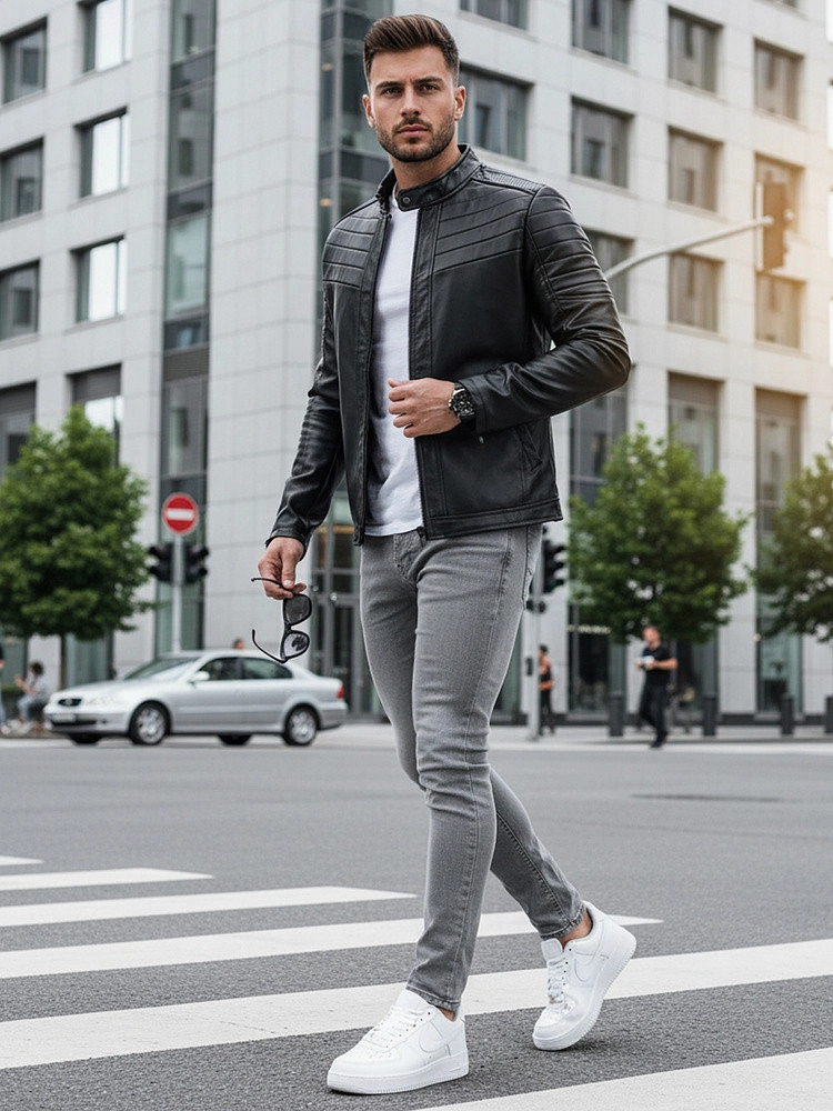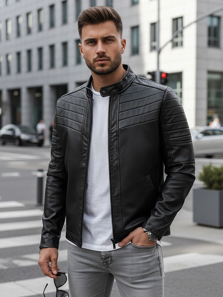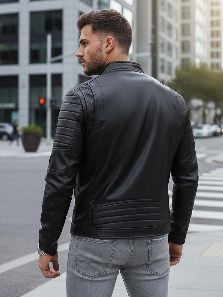 Męska kurtka skórzana. Skóra ekologiczna. Zapinana na zamek błyskawiczny. Kołnierz typu stójka zapinany na napę. Dwie kieszenie zewnętrzne. Kieszeń wewnętrzna. Ozdobne zamki na rękawach. Kurtka posiada podszewkę. Komfortowy krój. Idealna na co dzień.prečítajte si viac