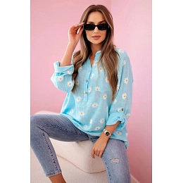 Hľadáte štýlovú, pohodlnú a univerzálnu blúzku? Táto košeľová blúzka s potlačou sedmokrások je perfektnou voľbou pre každú príležitosť! Je vyrobená z ľahkého, priedušného materiálu, ktorý je ideálny na jar a leto. Voľný strih zaisťuje voľnosť pohybu a jemný kvetinový vzor dodáva ženský šarm. Dlhé rukávy s možnosťou vyhrnutia umožňujú rôzne spôsoby nosenia podľa vášho štýlu.