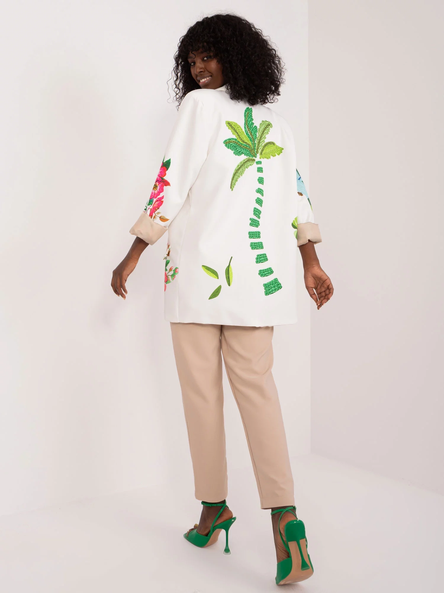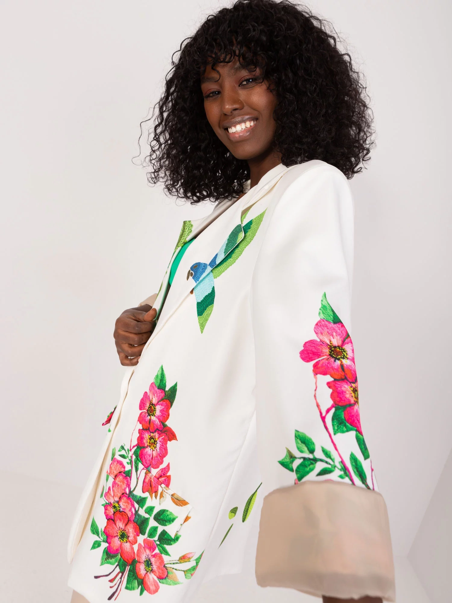 Rozmery bundy v jednej veľkosti meranej na plocho: šírka v podpazuší - 55 cm, dĺžka rukáva - 58 cm, celková dĺžka - 74 cm