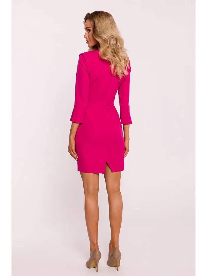 INFORMÁCIE O PRODUKTE: tkaná látka mini šaty vypasovaného strihu 7/8 dĺžky rukávy s rázporkami a ozdobným vzorom na ramenách