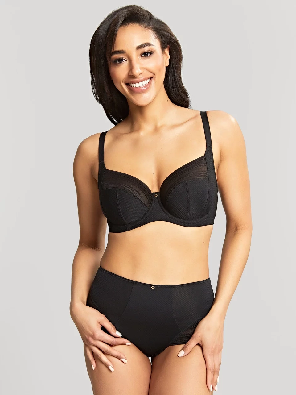 Luxusná dámska podprsenka, podšitá, nevystužená, s kosticou. Zapínanie na chrbte na tri háčiky. Posúvacie ramienka.