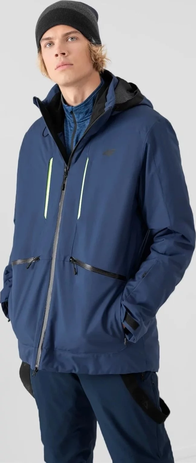 Pánska lyžiarska bunda s kapucňou vybavená vodeodolnou a priedušnou NeoDry 10 000 / 8 000 membránou zaručujúcou ochranu proti miernemu dažďu alebo snehu počas zimných aktivít.