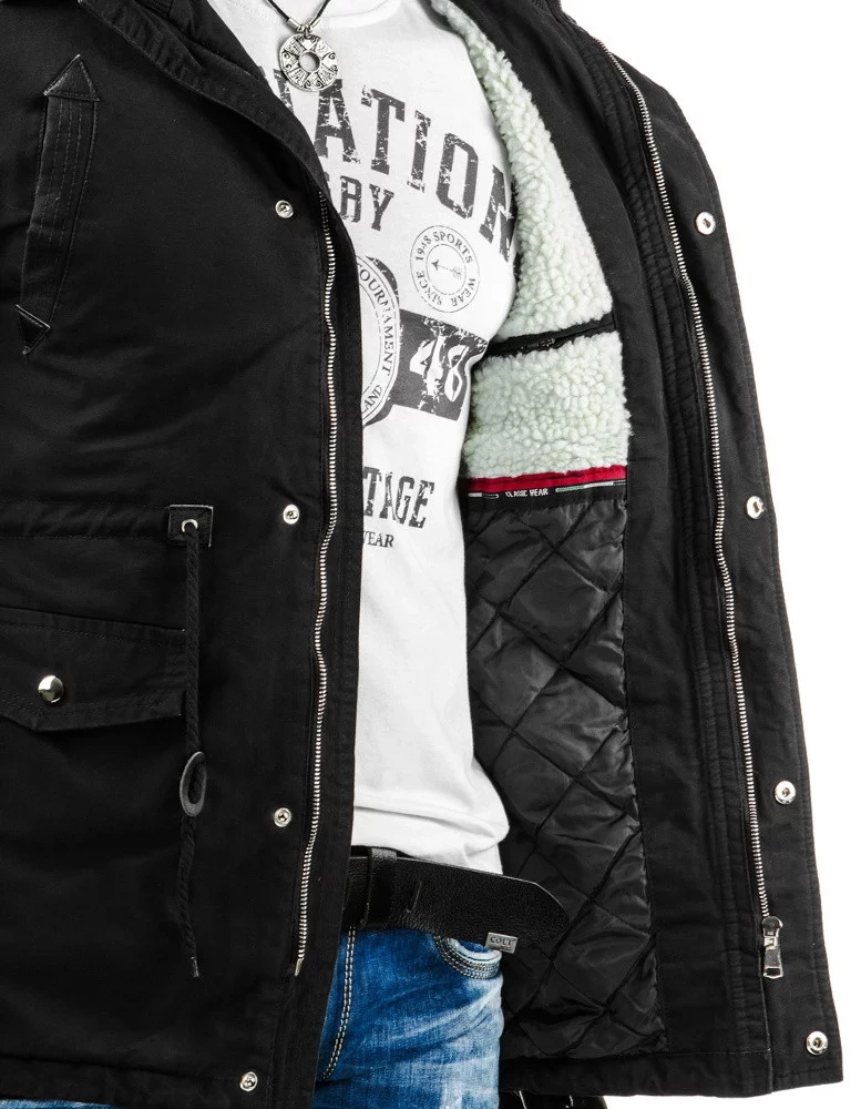 Pánska prešívaná zimná bunda s odnímateľnou kapucňou černá XXL