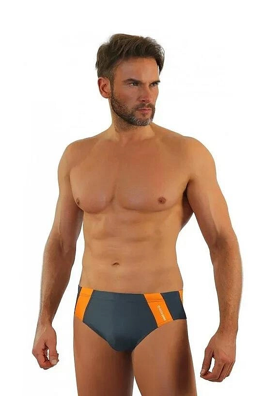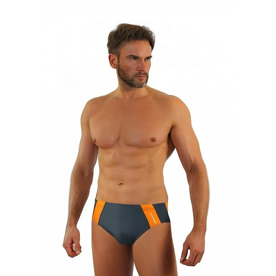 Popis Pánske slipové plavky 447 šedo-oranžové - Sesto Senso