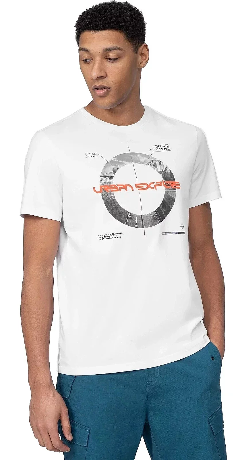 Pánske bavlnené tričko s krátkymi rukávmi a potlačou na prednej strane.