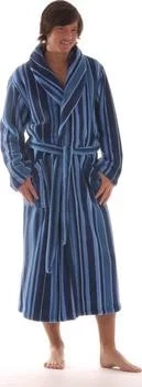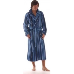 Pánsky župan Joe 2132 - Vestis, dlhý pruhovaný župan v modrej farbe, so šálovým límcom. Župan má veľké vrecká, zaväzuje sa na opasok.
