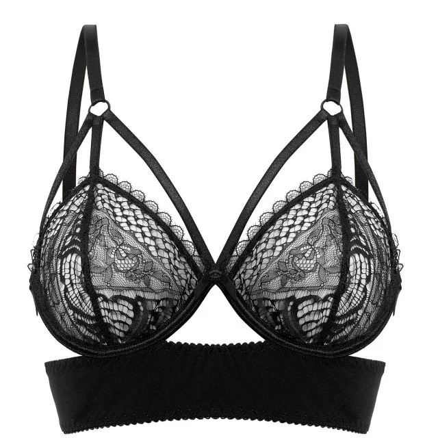 Luxusná podprsenka Pleasure State z elastického saténu v dekolte a bokoch dozdobená vyšívaným tylom.