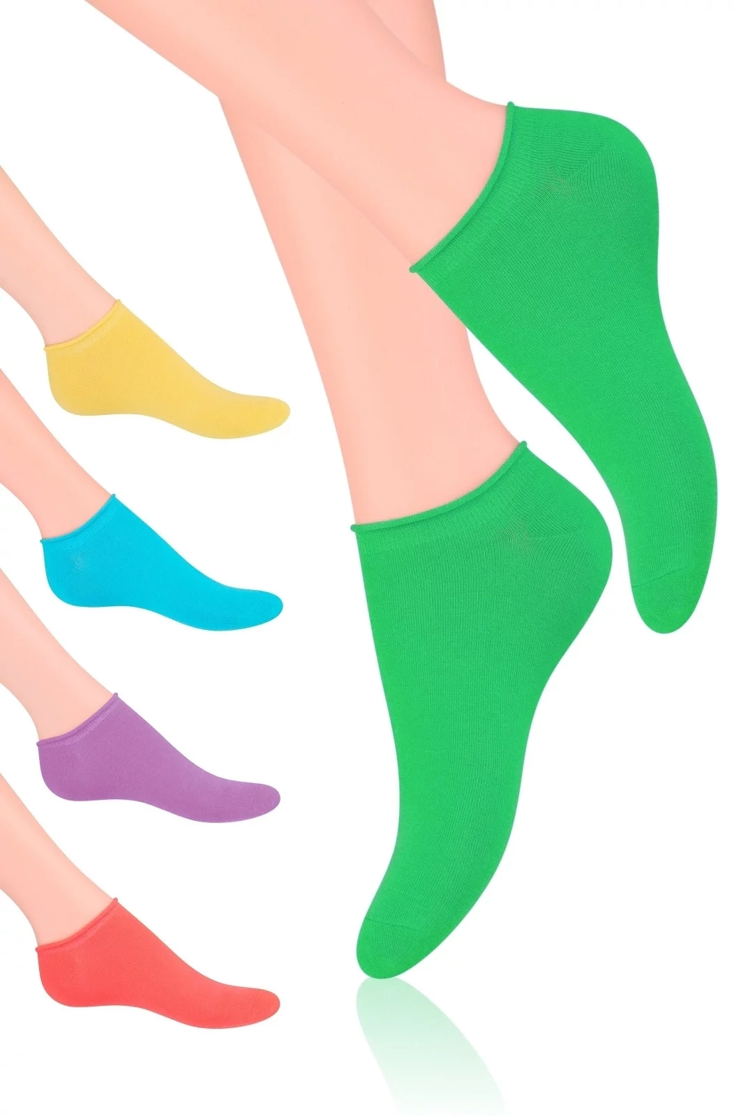 Bavlnené (87%) dámske členkové ponožky s prídavkom elastanu. Majú nesťahujúci lem.