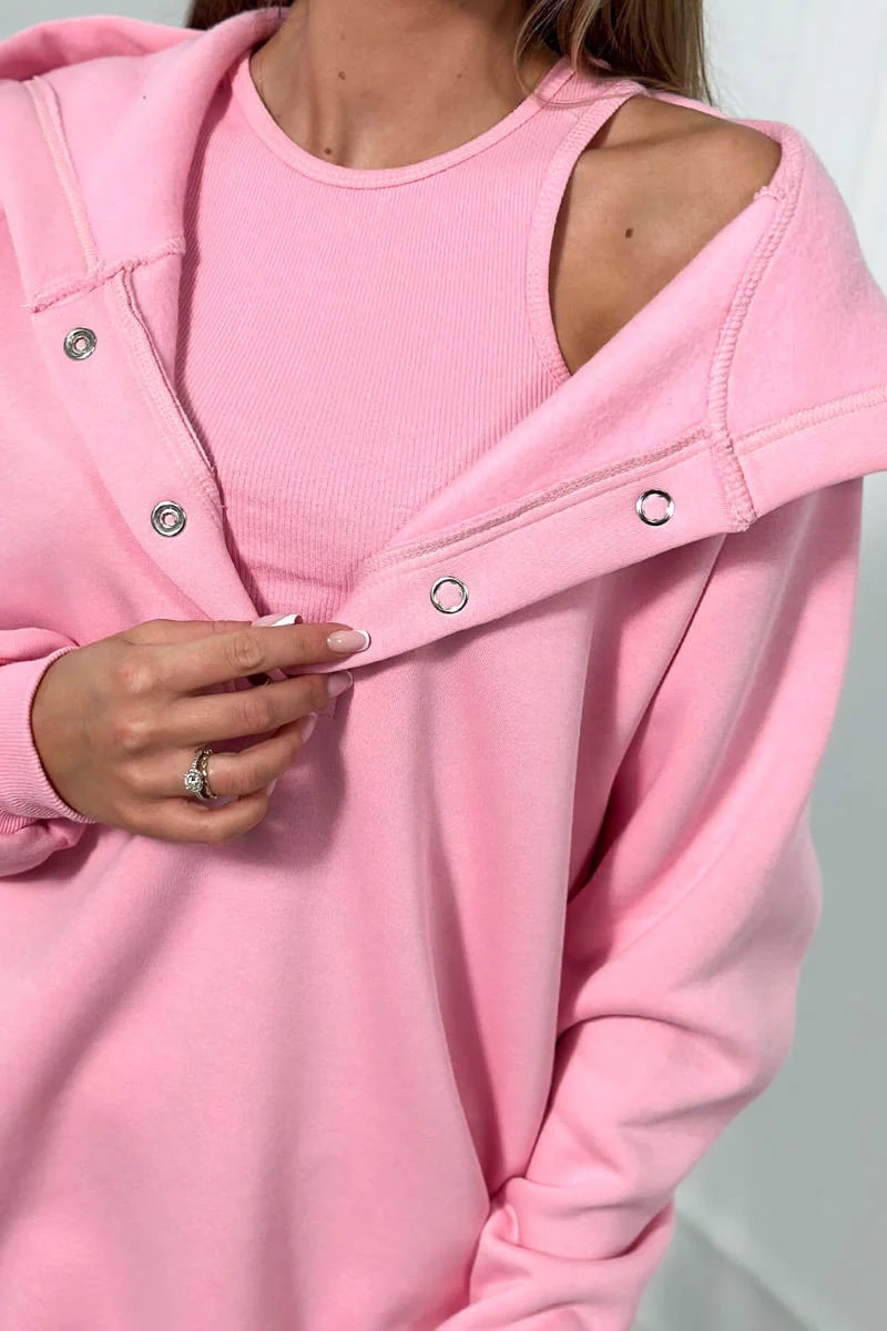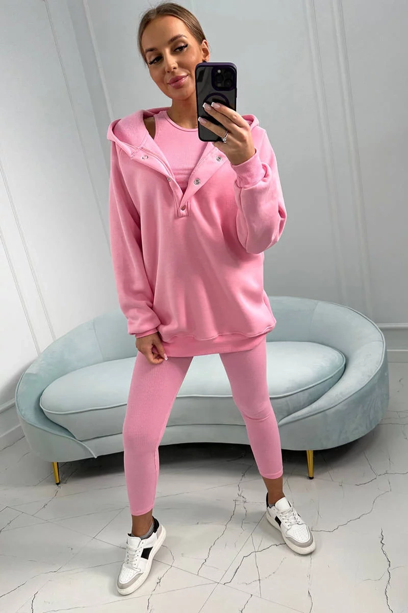 Trojdielny set pozostávajúci z mikiny, rebrovaných legín a topu je ideálnym oblečením pre ženy, ktoré ocenia módny a pohodlný štýl. Táto mikina s dlhými rukávmi vám zaistí pohodlie a teplo v chladných dňoch a zároveň dodá celému vzhľadu charakter. Top zvýrazní ženskú siluetu, zatiaľ čo rebrované legíny vám dodajú jemnú eleganciu a umožnia vám vyniknúť v dave. Takáto súprava je ideálna pre každodenné i formálnejšie príležitosti a vďaka rôznym farebným variantom ju môže každá žena prispôsobiť svojmu vkusu a štýlu. Veľkosť je univerzálna a vyhovuje dámam veľkosti S a M.