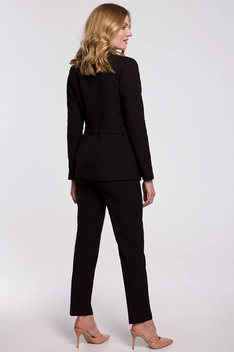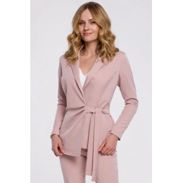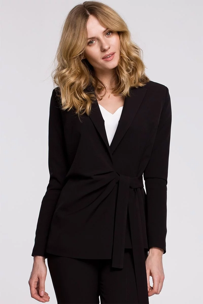 Elegantné zaujímavo riešenie sako so zaväzovaním. Vpredu naberané, vypasovaný strih, úzke rukávy, s podšívkou.