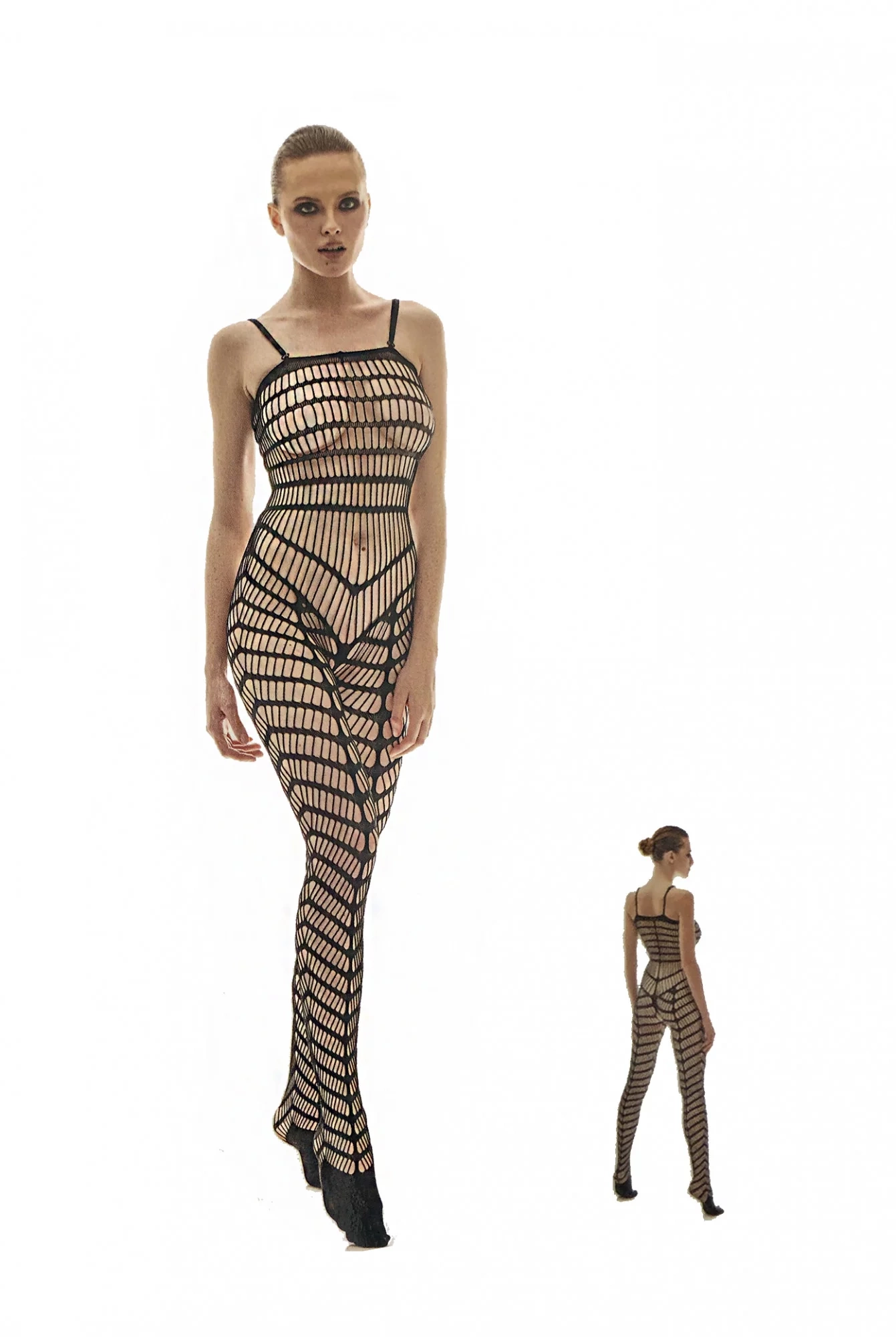 Sexy body je vyrobené zo sieťovaného pružného materiálu s ramienkami,