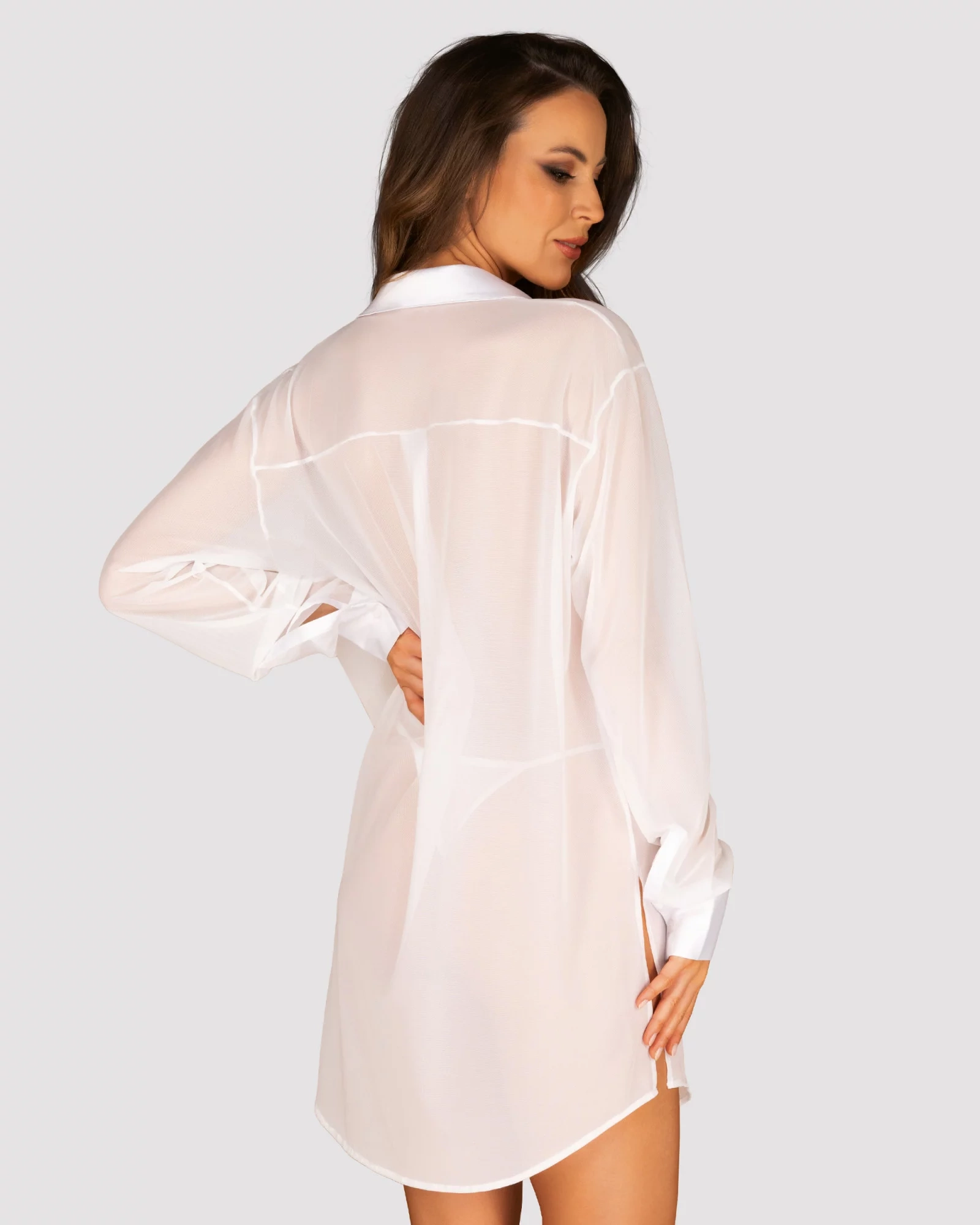 Zvodná a nesmierne elegantná biela blúzka babydoll. Výnimočne ženský strih sa bude skvele vynímať v spálni aj v každodenných súpravách. Jemný, ľahko priesvitný materiál zvádza a zároveň ponecháva veľa priestoru na fantáziu. Ak chcete doplniť svoj šatník o sexi a veľmi jedinečný model spodnej bielizne – ste na správnom mieste!