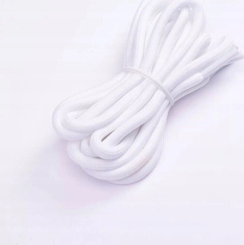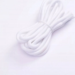 Šnúrky do topánky guľaté, dĺžka 90 cm, farba biela.Materiálové zloženie: 100% Polyester