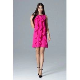 Trapézové šaty bez rukávov so zvislými volánmi. Model bez vreciek, bez podšívky, ušitý zo skvelého materiálu dodá ľahkosť a šik každému stylingu. Skvelá voľba pre ženy, ktoré si cenia eleganciu.