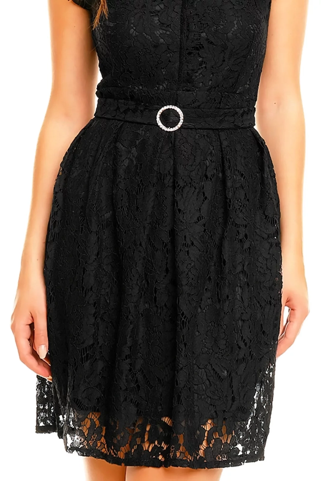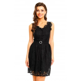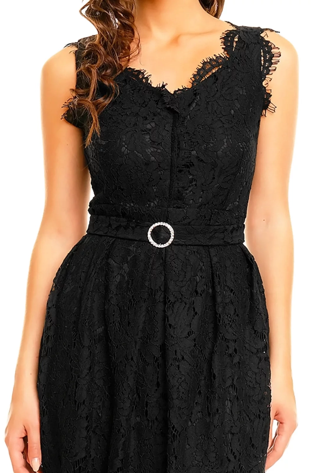 Spoločenské šaty a plesové šaty krajkové značkové Mayaadi Deluxe, doplnené opaskom so sponou. V šatách je v zadnej partii všitý skrytý zips, šaty majú výstrih do "véčka". Materiál je elatický, viď rozmery nižšie v tabuľke. Šaty sú bez rukávov. Tento model šiat je možné využiť univerzálne do akejkoľvek spoločnosti, formálne aj neformálne, do divadla, na plesy, rauty, oslavy, na slávnostný obed či večeru, oslavu narodenín, alebo na romantické rande s priateľom či manželom.Šaty sú elastické a pohodlné na nosenie, sú vyrobené z na dotyk príjemného materiálu.