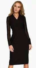 - výstrih do V - dlhé sieťovinové rukávy - dĺžka po kolená - gombíkové manžety - rozparok na suk