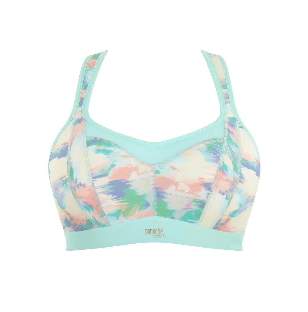 Dámska športová podprsenka veselých farieb, s kosticami, vystužené košíčkami.