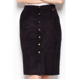 Módna ceruzková sukňa v midi dĺžke zo semišu. Charakteristickým znakom sukne je rad ozdobných gombíkov, ktoré sa tiahnu po celej dĺžke sukne.