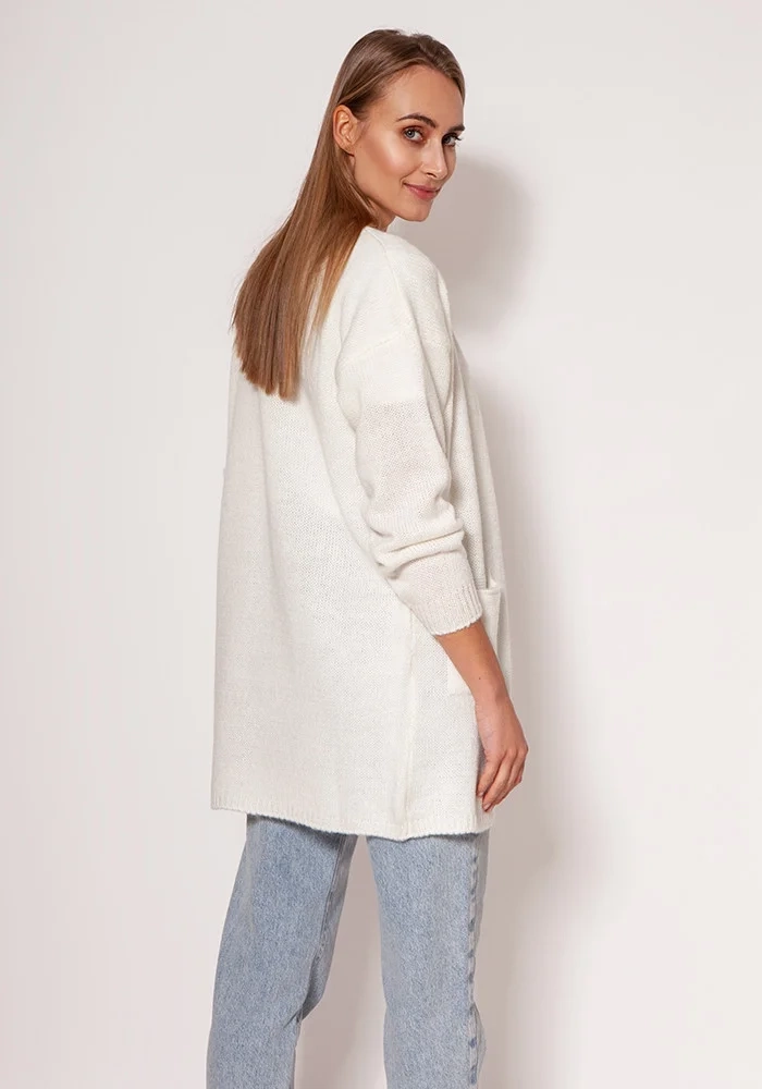 Svetr na zapínání PA013 krémový - MKM XXL/XXXL