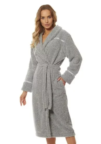 Pohodlný dlhý dámsky župan, ktorý je vyrobený z mäkkej tkaniny typu "soft".