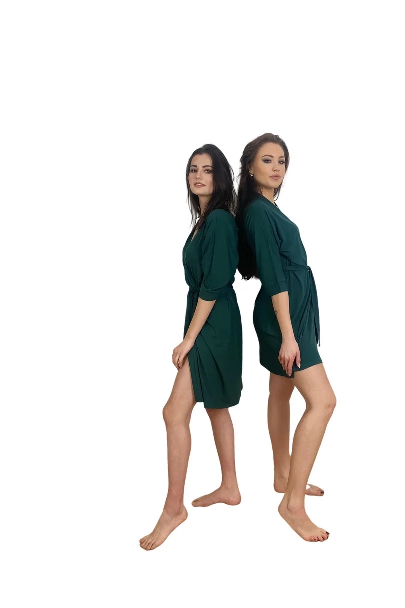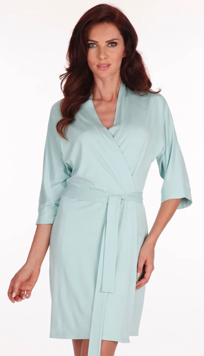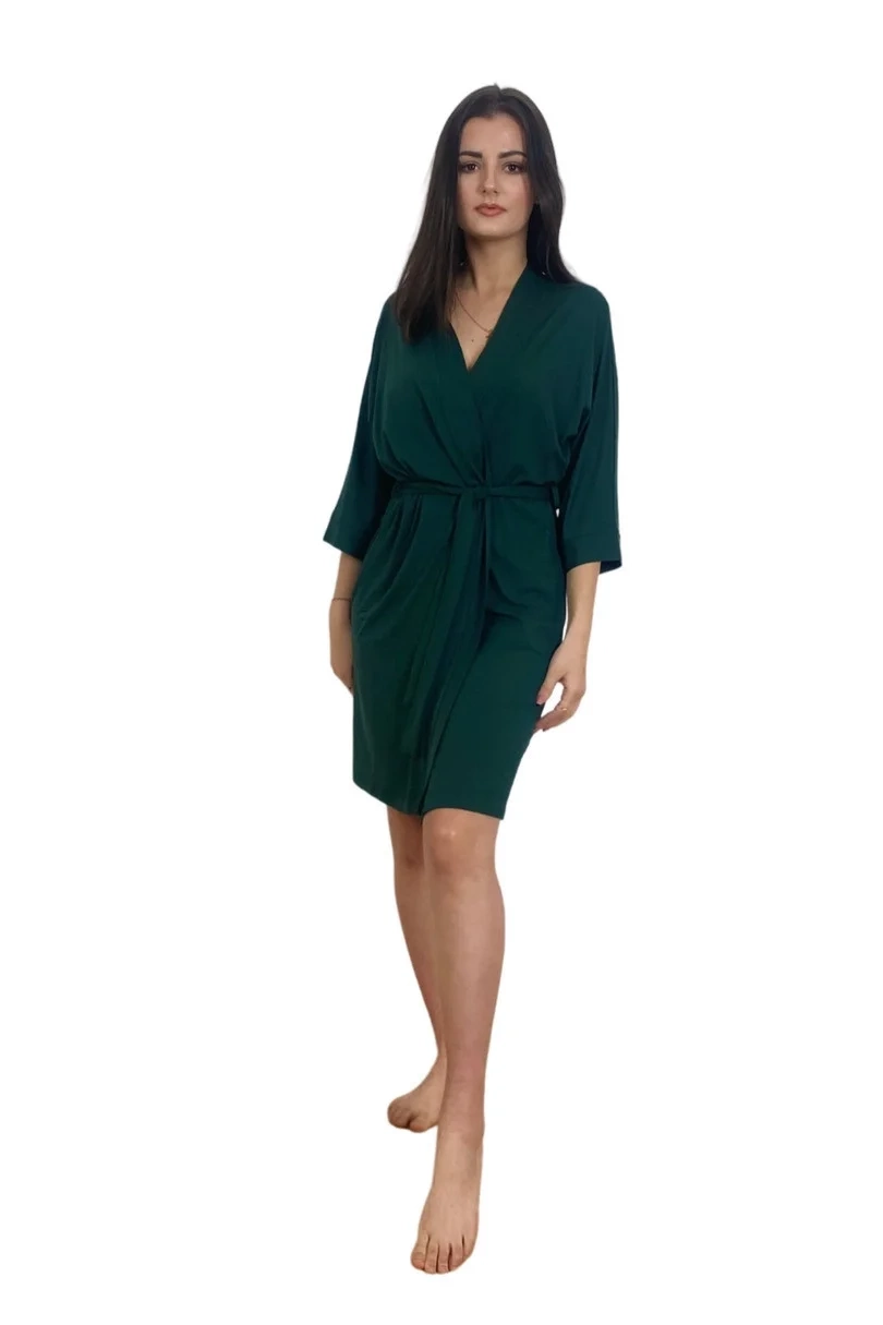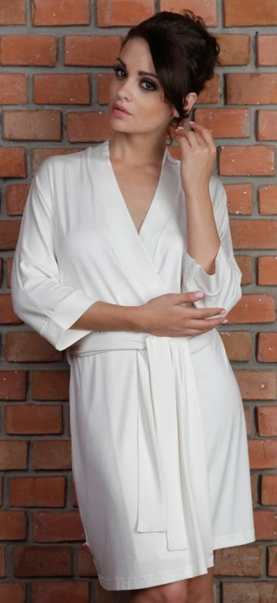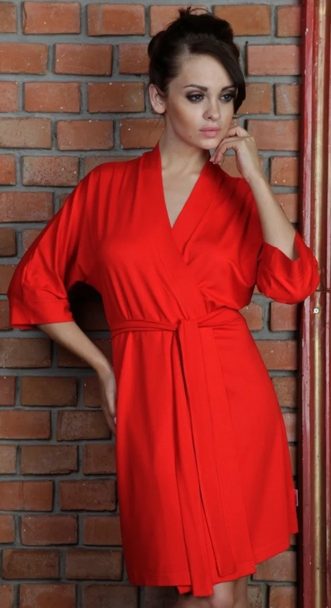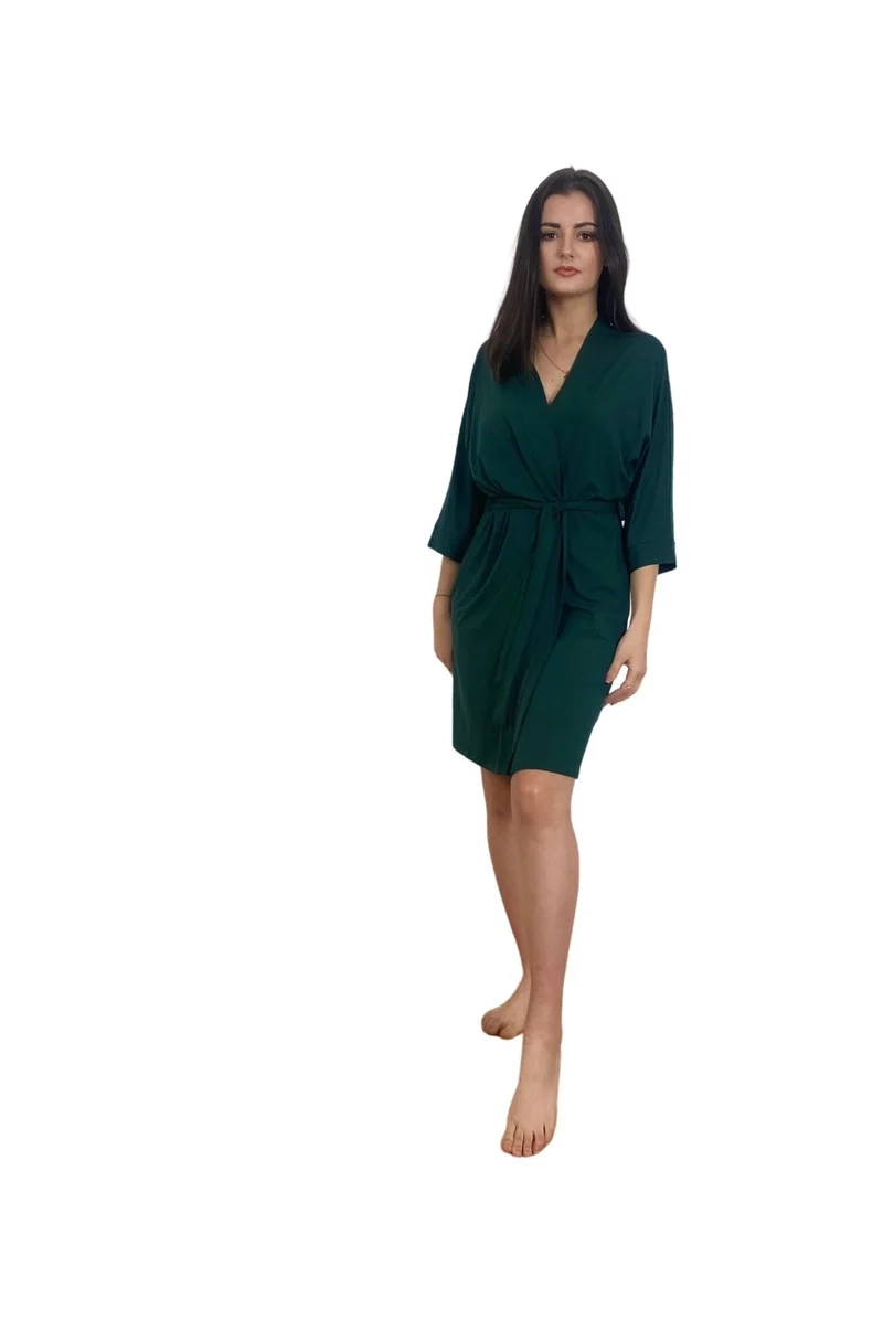 <p>Szlafrok damski z wysokiej jakości wiskozy 94% z dodatkiem elastanu. Krótki, wiązany w pasie, rękaw 3/4</p>