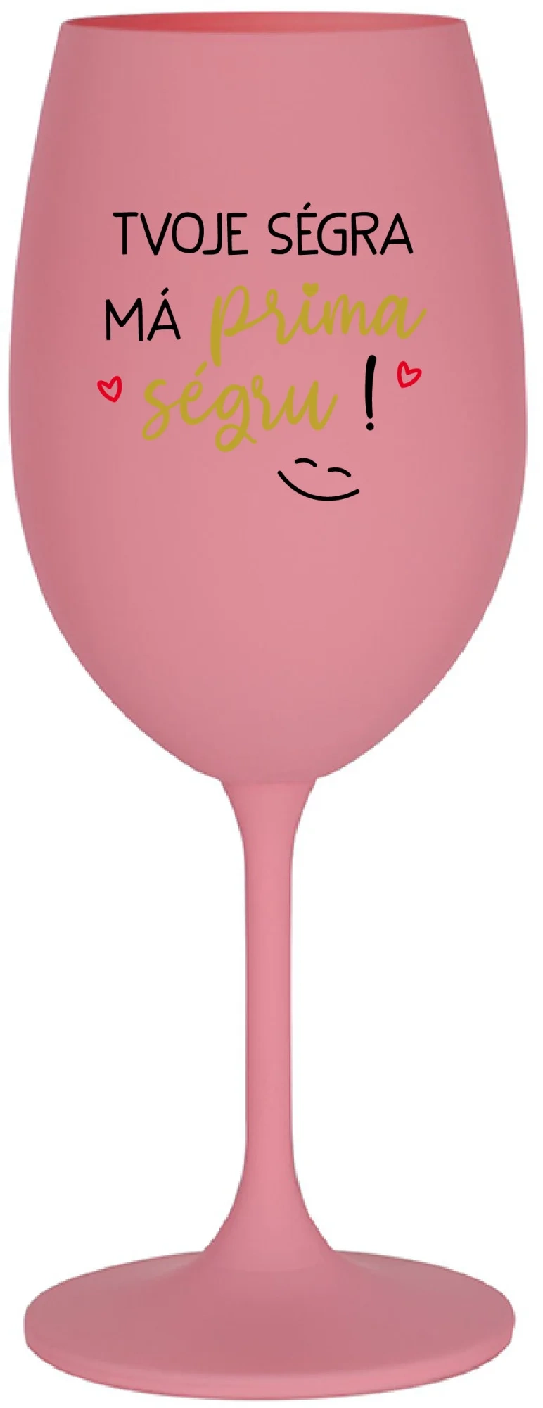 Vínny ružový pohár s originálnym motívom TVOJA SÉGRA MÁ PRIMA SÉGRU! je krásnym a osobitým darčekom, ktoré ale využijete aj Vy sami napríklad vo chvíľach, kedy si budete chcieť spríjemniť náročný deň. Tieto originálne vínne poháre sú totiž nielen pre výnimočné udalosti, ale aj pre bežné večery, ktoré si chcete spríjemniť pohárom dobrého vína. Iste preto poteší každého milovníka vína, aj toho, kto si vie svoj život vychutnať plnými dúškami.