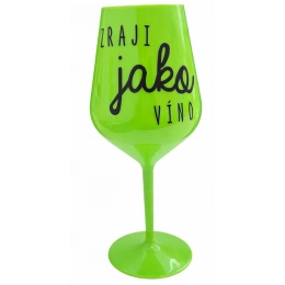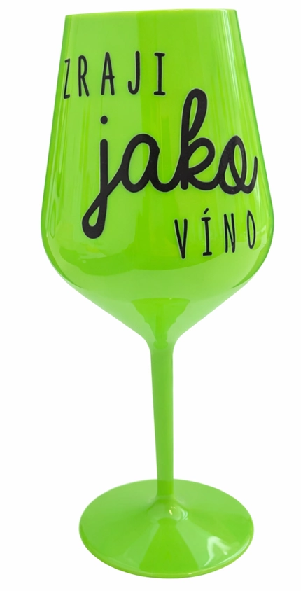 Nerozbitný zelený vínny pohár s motívom Zraji ako Víno je skvelý na záhradu, pláž, výlet, piknik a parádu urobí aj pri kempovaní. Keďže je vyrobená z kvalitného polykarbonátu je de facto nerozbitná. Je to luxusný kúsok, s ktorým si víno môžete vychutnať jednoducho kdekoľvek. Majú ergonomický tvar, ktorý príjemne padne do ruky a pretože je ľahká, uľahčuje to jej prenášanie. Je ľahko skladovateľná a ľahko sa čistí. Vďaka svojmu designu si s ňou môžete vychutnať naozaj kdekoľvek bezproblémové pitie výborného vína.